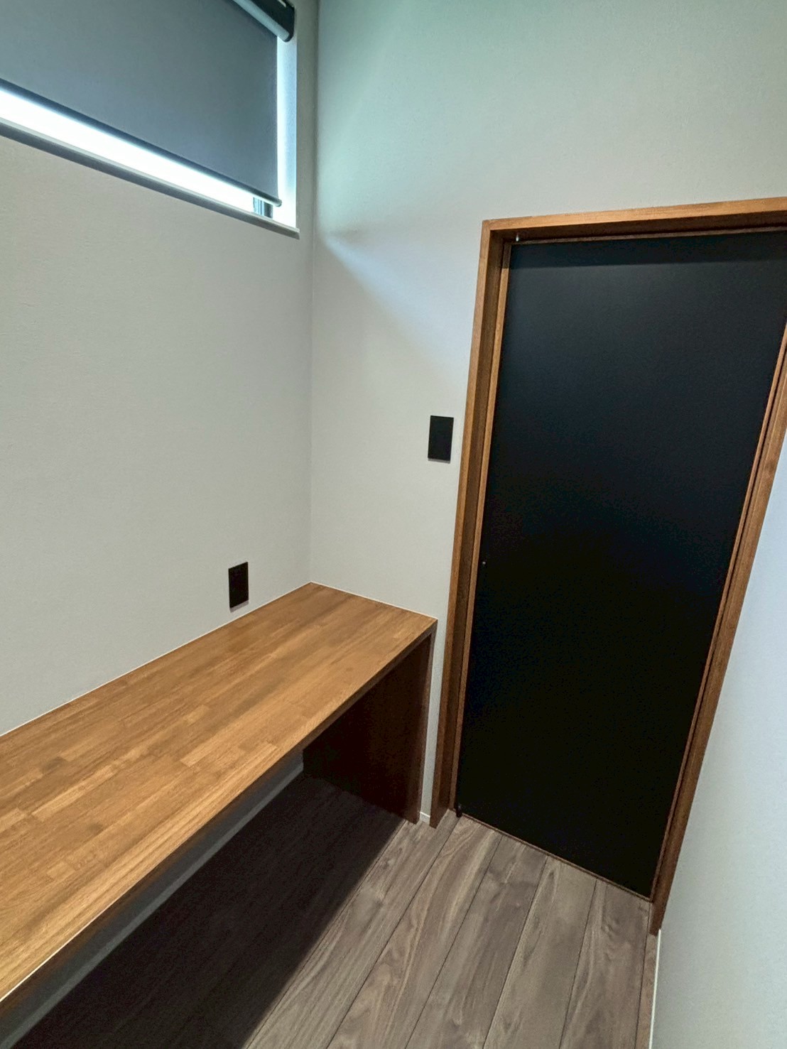遊び心ある寝室の隠し扉の奥には書斎スペースを確保